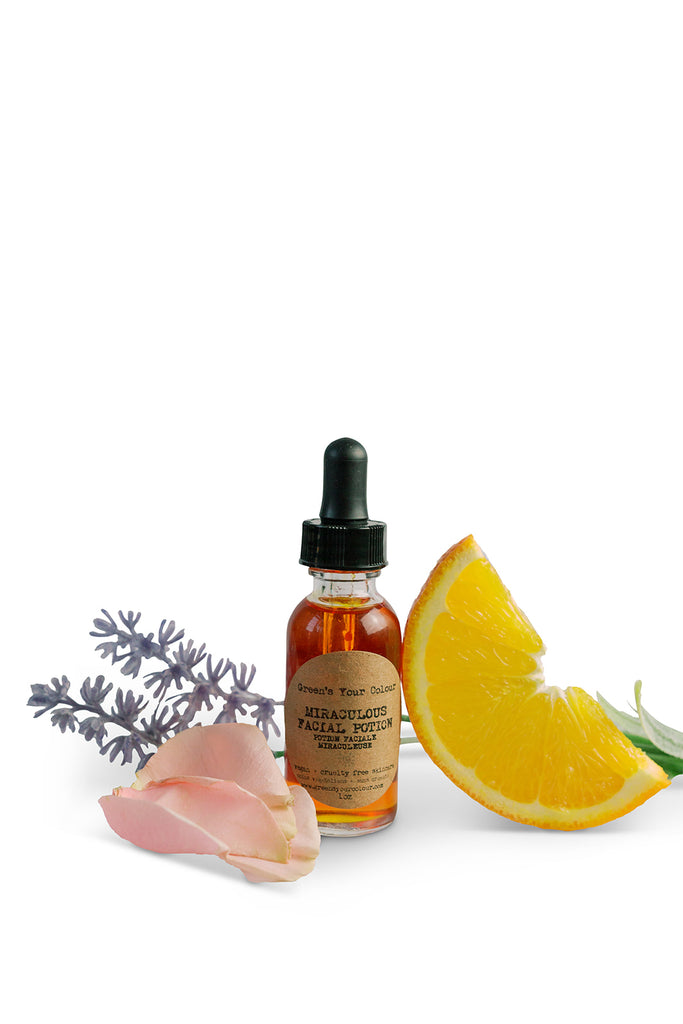 Miraculous facial potion ingredients: Rose hip seed oil, camellia oleifera seed oil, marula seed oil, pomegranate seed oil, carrot seed oil, tamanu seed oil, prickly pear seed oil, sea buckthorn berry oil, sweet orange oil, lavender oil