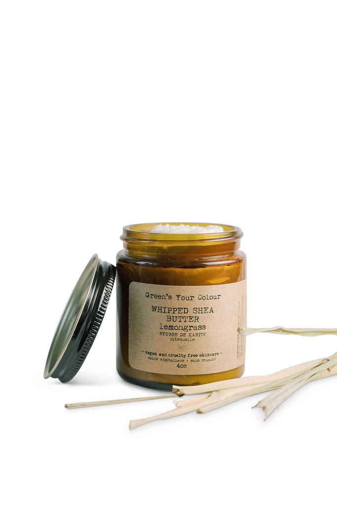 Whipped shea butter lemongrass ingredients: Butyrospermum parkii shea butter, cymbopogon schoenanthus lemongrass oil