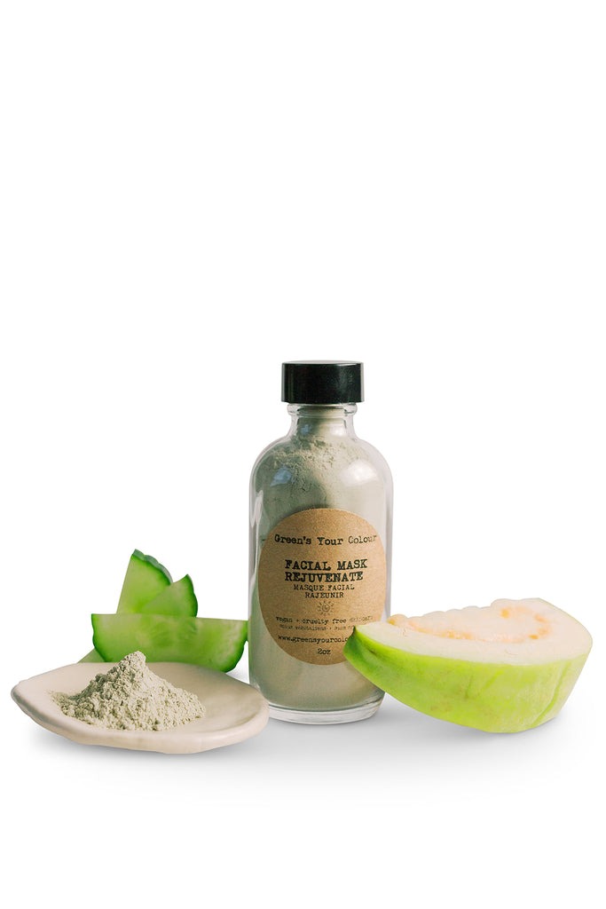 Facial mask rejuvenate ingredients: Montmorillonite french green clay, bentonite clay, cucumis sativus cucumber extract, psidium guajava guava extract