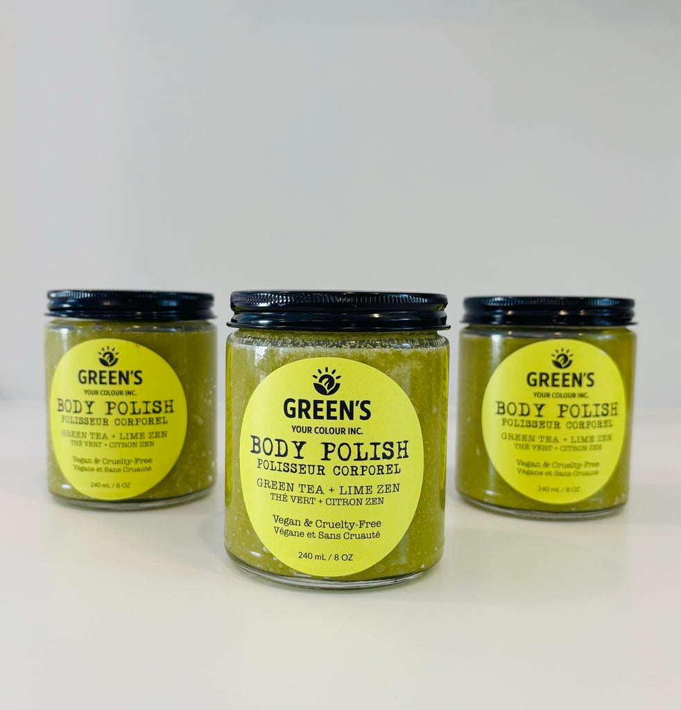 Your skin will feel silky smooth, refreshed, and detoxified with our Green Tea + Coconut Oil Body Polish, handcrafted in Canada. This natural, moisturizing formula gently exfoliates and nourishes skin while delivering antioxidant-rich green tea benefits.