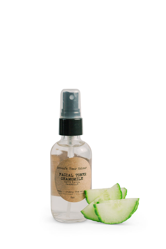 Facial toner chamomile ingredients: Roman Anthemis Nobilis Chamomile flower water, hamamelis virginiana witch hazel distillate alcohol free, sativus cucumber extract